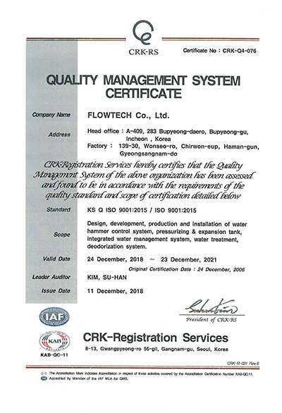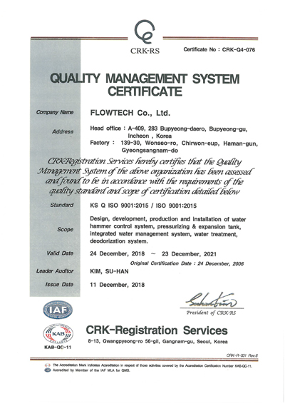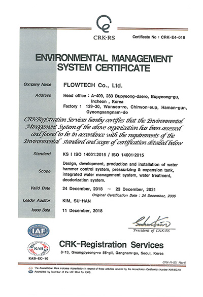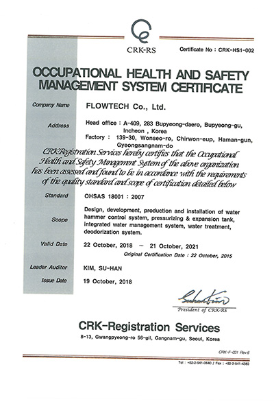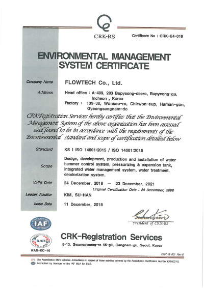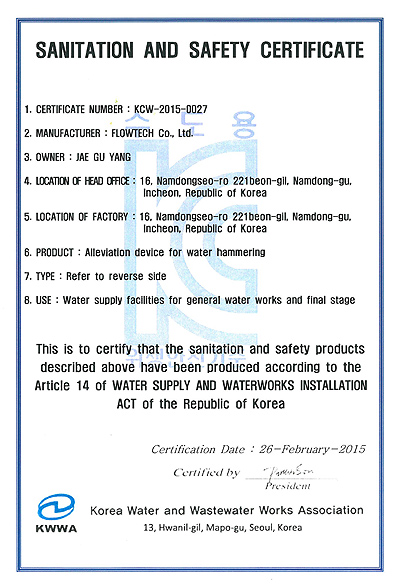 SANITATION AND SAFETY CERTIFICATE | Korea Water and Wastewater Works Association |