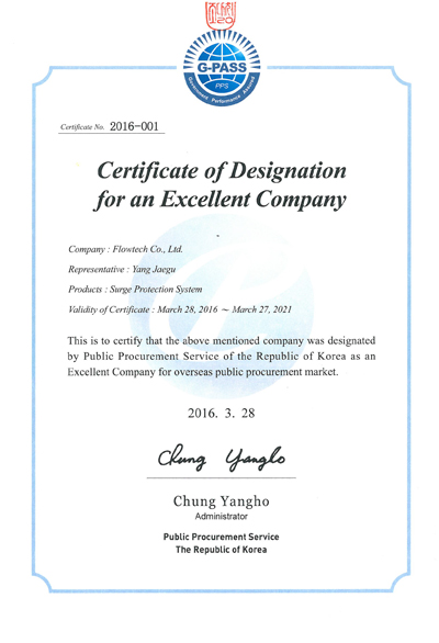Certificate of Designation for an Excellent Company | Public Procurement Service The Republic of Korea | |